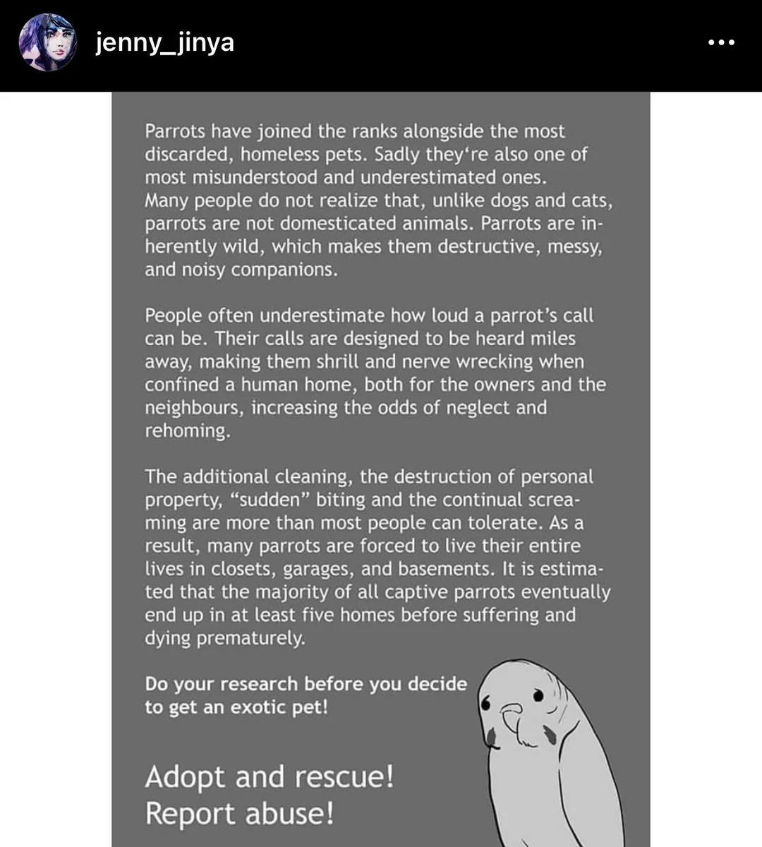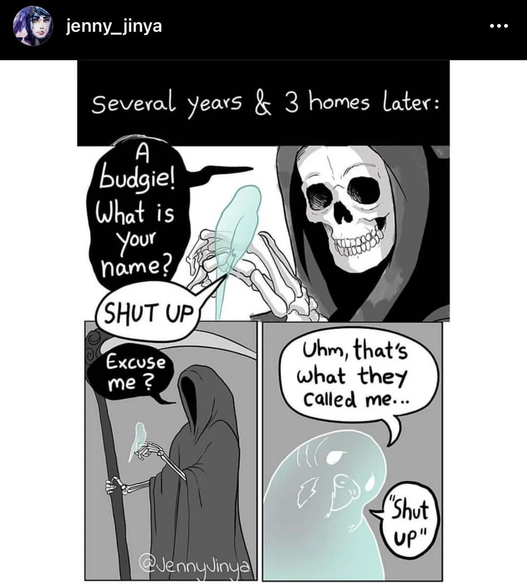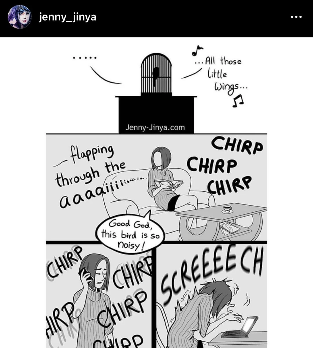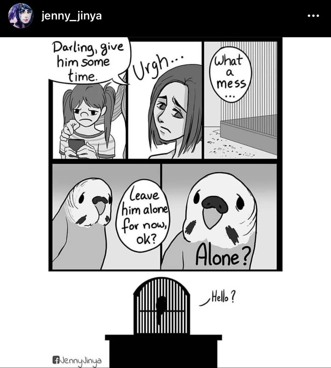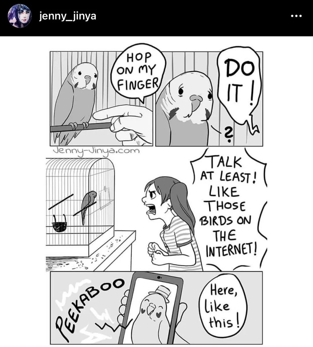 I hope these questions above help understand some of the important considerations before getting a pet bird. If you're still feeling confident, I'll leave you with the below illustration that always leaves me in tears because of the painful reality of bird ownership. Credit to Jenny Jinjya, the comic artist, for the below illustration.